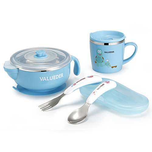 The feeding set is Eco-friendly, food grade material, BPA FREE. Suggest Hand washing and DO NOT put the meal set in Microwave/Sterilizer/Boiling water/Freezer. HOW to CLEAN Clean the bowl and cup in room temperature water with cleanser for children products. To avoid the water chamber of bowl getting mouldy, we suggest turn the bowl...