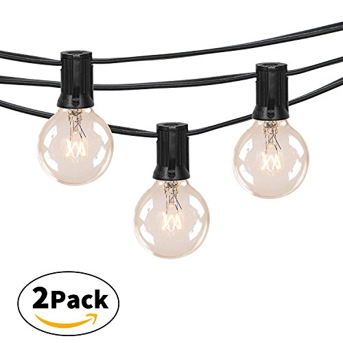 2-Pack 25Ft Outdoor Patio String Lights with 25 Clear Globe G40 Bulbs, UL Certified for Patio Porch Backyard Deck Bistro Gazebos Pergolas Balcony Wedding Gathering Parties Marquee Letters, cafe, markets and more. SPECIFICATION Voltage: 120V Bulb Type: Incandescent bulb Bulb Count: 25 Wire Colors: Black Bulb Spacing: 12 in. Diameter of Bulb: 1.5 in....