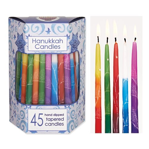 Rite Lite Judaica Chanukah Candles Set – 45 Deluxe Natural Finish Hanukkah Candles for Menorah (Assorted Colors). Includes 45 Chanukah candles ~ enough for all 8 nights of Chanukah. These deluxe Hanukkah candles are sized to fit most menorahs. Lead-free wicks. This set features 5 colors: blue candles; yellow candles; red candles; purple candles;...