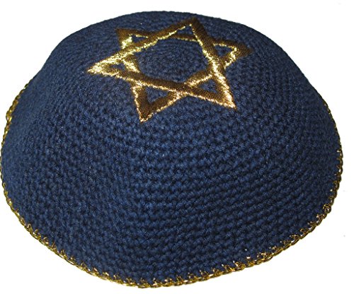 Product Features Knitted Navy Blue Star of David Gold Color Rim