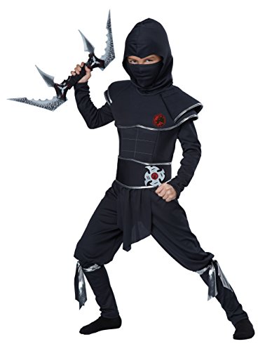They will never see me coming. The Ninja Warrior child costume is a jumpsuit with attached hood and leg ties. It comes with a mask, a belt with tabard and (1) one foam ninja star. Socks not included. Ninja weapon sold separately. Product Features Black Jumpsuit with Attached Hood Black Face Mask Belt with...