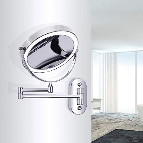 Featuring 5 Magnification, This Makeup Mirror Provides An Up-Close-And-Personal Look At Your Skin, Keep Your Make-Up Flawless With JHNEA Wall Mounted Makeup MirrorPRODUCT DESCRIPTION:Product Name: Wall Mounted Bathroom MirrorMaterial:Copper chrome platingColor:Silver Product size: 8 inchPowered By: use Battery OperatedInstallation method: drilling installationPower control: On/Off button is located on the back of the mirror.LED lighted:...