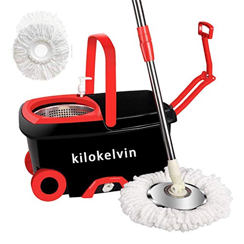 Why choose kilokelvin Spin Mop and Bucket System? Mop Head Machine Washable You could easily wash the mop head in your washing machine with NO worry. High Quality Our spin mop and bucket system is built to last. Made of high quality ABS and stainless steel. Unlike other competitors, our dryer basket, mop handle...