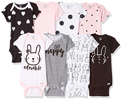 Get ready for mixing and matching fun with this 8-pack of baby girls’ short sleeve onesies bodysuits from Gerber! the large assortment of themed bodysuits features unique designs and color combinations. The creative use of puff print makes these unique. Your little girl will enjoy the soft, comfortable feel of the 100 percent cotton...