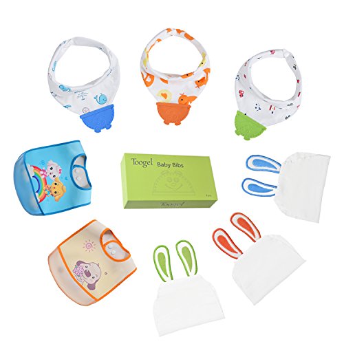 Toogel Teething Bibs 2 in 1 COMBO: • Both sides made of the 100% organic cotton fabric, middle layer adopts waterproof PU material, antibacterial breathable, soft skin-friendly, comfortable to wear. • 3 kinds of environmental printing patterns and multiple colorful designs to promote the baby’s color identification and preference. • Teething Toy: Food-grade silicone,...