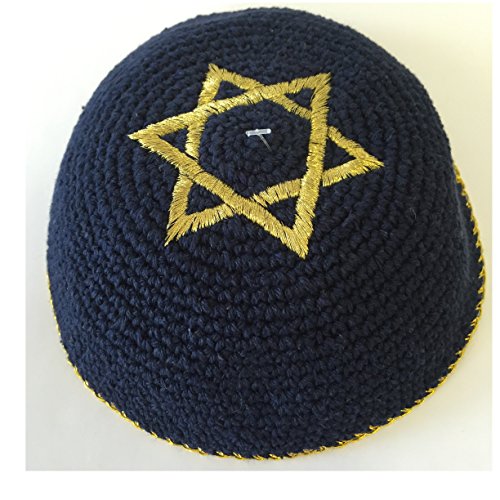 Alef Judaica Navy Blue Knitted Kippah with Gold Border and Star of David In Center Design – 6 Kippot Per Order Product Features Alef Judaica Beautiful Design! Top Quality! Conversation Starter!