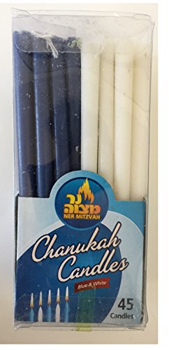 Alef Judaica Blue And White Israel Chanukah Candles – 45 Per Box – 2 Boxes Per Order. Burns Over One Hour. Product Features Alef Judaica Beautiful Design! Top Quality! Conversation Starter!