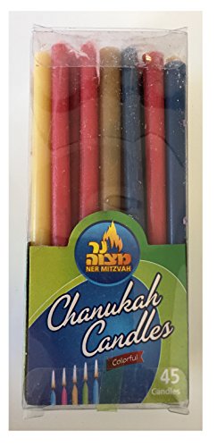 Alef Judaica Multi Colored Chanukah Candles – 45 Per Box – 2 Boxes Per Order. Burns Over One Hour. Product Features Alef Judaica Beautiful Design! Top Quality! Conversation Starter!