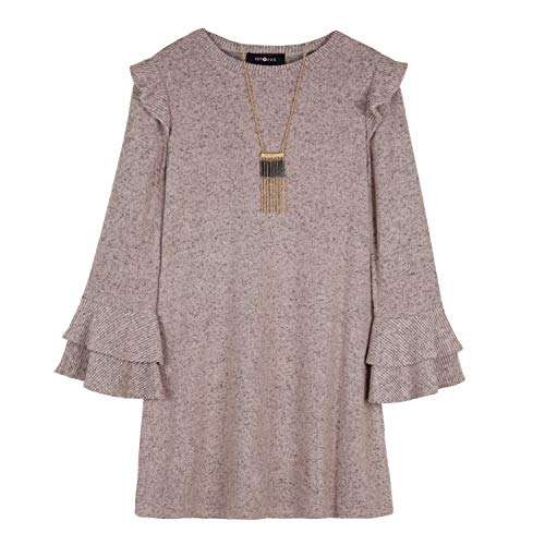 This bell sleeve fuzzy knit A-line dress from Amy Byer is the perfect addition to her wardrobe. You can feel good about the price and quality of Amy Byer clothes for tween girls. Product Features Includes necklace Perfect dress for school or special occasions