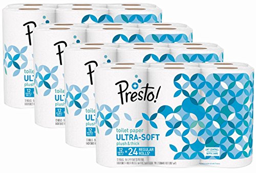 Presto! Ultra-Soft Toilet Paper offers great softness with the strength you need. This septic-safe bath tissue leaves less lint behind versus the leading ultra-premium soft brand, based on laboratory testing. Each mega roll lasts 4X longer than a regular roll of toilet paper (based on a regular roll with 77 sheets). Presto! Ultra-Soft Toilet...