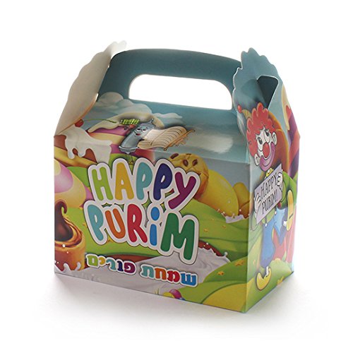 Colorful Purim Gift Box suitable for all your mishloach manos. Features the words “Happy Purim” in English and “Simchas Purim” in Hebrew on the box. Enjoy the holiday of Purim with this practical and convenient mishloach manot box! Item Dimensions: L 6.1 in x W 3.9 in x H 7.87 in Material: Cardboard Product...
