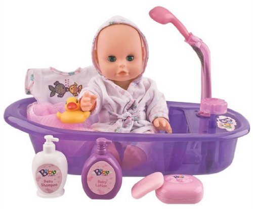 With this precious little mommy bubbly bath time doll, girls can play out the nurturing moments of bath time– and get to be just like their mommies, too! place the bubbly bath time doll in her cute pink tub with a real working foam dispenser, then use the bird-shaped pouring cup to wash her...