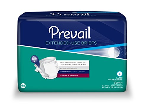 (SOLD BY BAG 18/EA) Prevail Pm Adult Brief, Large 45″-58″. Designed with maximum plus absorbency for extended or nighttime use. Featurecloth-like outer fabric, Easy-Lock Fastener(r) (ELF®) tab closures, Advanced Zoning System(r), and Breathable Zones for maximum leakage protection, skin dryness, a better fit and wearer comfort. For heavy incontinence protection. Large (waist 45″ –...