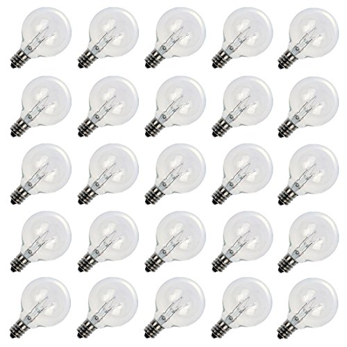 25 Pack Clear G40 Globe Bulbs With Candelabra Screw Base, E12 Candelabra Base Light Glass Bulbs Specification: G40 Bulbs Light Color: Warm White Power: 5W Voltage: 120V UL LISTED Package: 25PC Bulbs Product Features 1.5″ globe bulbs,Each Piece 120V/5W 25-count bulbs per pack Clear glass globe bulbs cast a warm white glow Fits Socket:...