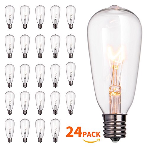 Brightown 24-Pack Edison Light bulbs, 7 Watt E17 Candelabra Screw BaseST40 Replacement Clear Glass Bulbs, Waterproof Dimmable Vintage Light bulbs for Commercial Grade Outdoor Patio Garden Antique String Lights, Amber Warm Specification Power Consumption: 7 watt each Voltage: 120 volts Material: Glass Color: Amber Warm Bulbs Quantity: 24pcs Base Type: E17 Diameter: 1.6 inch...