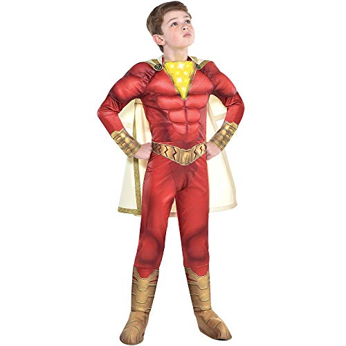 Your little hero will be ready to display their wizardry skills and power in this Light-Up Shazam Muscle Halloween Costume. This dress up costume is designed to look like the one in the blockbuster movie. It features padded muscles in the chest and arms and gold details for the belt, gauntlets, and boots. The...