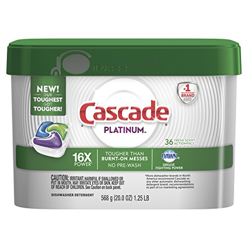 Cascade ActionPacs Dishwasher Detergent, Fresh Scent, 105 Count Product Features Cascade ActionPacs power away greasy residue for sparkling dishes ActionPacs dishwashing detergent with the grease-fighting power of Dawn Rinse aid action rinses away residues and leaves brilliant shine ActionPacs dish detergent offers easy dosing #1 Recommended Brand in North America* *More dishwasher brands in...