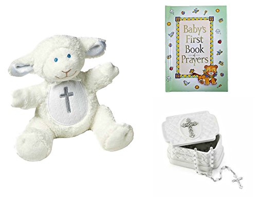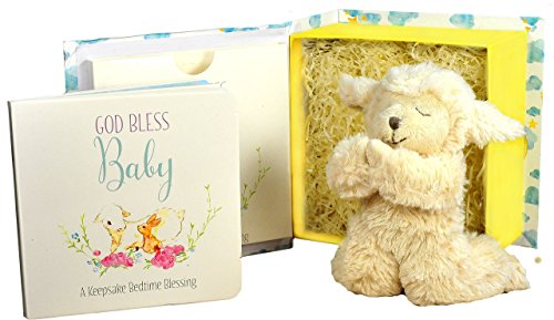 The perfect gift for baby’s baptism or christening! God Bless Baby gift set includes a 7 inch “Pray with Me Lamb” that recites the “Now I lay me down to sleep” prayer in a precious young voice when you press his tummy. The set also comes with the “God Bless Baby” Keepsake Bedtime Blessings...
