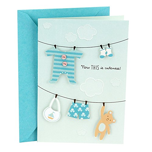 Send your best wishes to new parents with this card featuring a clothesline holding baby clothes, a bib, and a teddy bear. Card measures 5″ x 7.2″, and an envelope is included. The Hallmark brand is widely recognized as the very best for greeting cards, gift wrap, and more. For more than 100 years,...