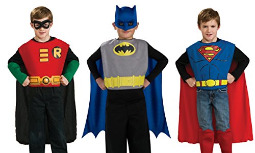 Rubie’s Costume Company has designed quality costume and fun clothing for decades. Trusted to be the leader of cosplay, Halloween, and general decor items, Rubie’s does not sacrifice quality for price. Expect the highest in costume design and material with Rubie’s. Product Features Batman costume includes: Batman Tabard with attached cape and headpiece Superman...