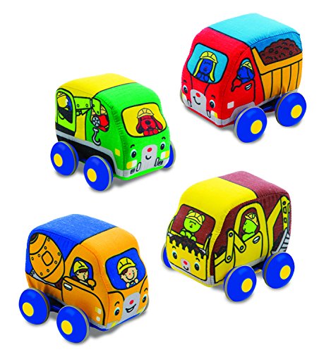 Pull these soft constructions vehicles back to get new skills rolling! The “rev up” mechanism inside each of these four construction vehicles (mixer, dump truck, loader, and crane) makes it easy for babies and toddlers to get big acceleration with just a little input: Pull back one of the soft vehicles, then release to...
