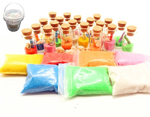Kids Arts and Crafts Set – by Guaishou Easy to do for boys and girls – Age 6 and up Used for Decoration when project is finished Glass bottles 20pcs + Rainbow Sand 7 Bag + Seashells 50pcs + Paper 20pcs+ Contains plastic bucket Product Features If you find that the product is scattered...