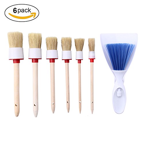 Aieve 6 different size car detail brushes set and 1 car broom with dustpan Specifications: Material: natural boar hair & wood Brush diameter: 0.8″(20mm), 1″(25mm), 1.2″(30mm), 1.4″(35mm), 1.6″(40mm), 1.8″(45mm) Feature: round shape and smooth wood handle, soft and flexible durable bristles Package includes: 6 x Auto Detailing Brushes 1 x Car Cleaning Brush 1...