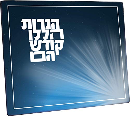 Chanukah Tray Glass Blue Haneiros Hallalu Design Place this drip tray beneath your Menorah and protect your table from dripping wax! Present your Chanukah delicacies in fun style! The design presents a colorful and fun tabletop serving tray that will bring smiles to your family and friends. A blue design of Haneiros Hallalu artfully...