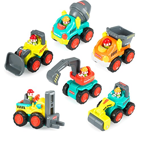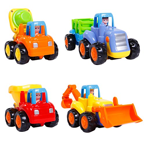 Set of 4 Friction Powered Cars, Push and Go Construction Vehicle Play set, Tractor,Bulldozer,Cement Mixer,and Dumper Truck Product Features Set of 4 Construction Car Toys: 1 x cement truck, 1 x dump truck, 1 x bulldozer, 1 x farm tractor with wagon included, automatic rotating functions. Push the friction car forward slightly then it...