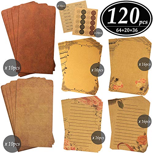 CenterZ 120 in 1 Vintage Stationary Paper and Kraft Envelopes Set with Seal Stickers ★ Most Popular Using – Perfect for mailing maps, certificates, invitations, poetry scrolls, poems, lyrics, treasure hunts, menus, letters to Santa, and much more – Great for mailing private or business-related documents, catalogs, direct mail, promotional material, brochures, letters and...