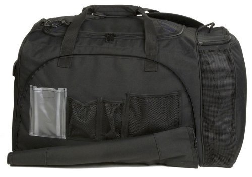 Large capacity. Reinforced padded handles with velcro closure. Removable padded shoulder strap. Main compartment holds all football equipment, shoulder pads, helmets, thigh and knee guards. Separate vented shoe compartment. Individual pockets for gloves, mouth guard, valuables and cell phone. Two mesh bags, one for your helmet and one for laundry. Removable front panel for...