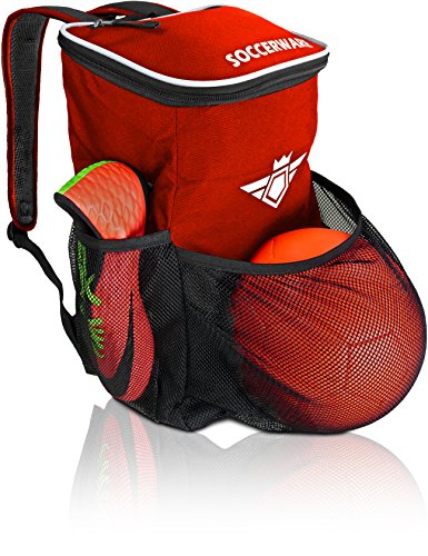Soccer Backpack by Soccerware. Designed with a ball pocket that does not take away space from the inside of the bag. FEATURES Ball pocket that expands to all shapes/sizes Cushion padded back panel Dual water bottle holders Waterproof dual layer internal lining Top zipper accessories pocket Internal easy access and zipper pocket for media...