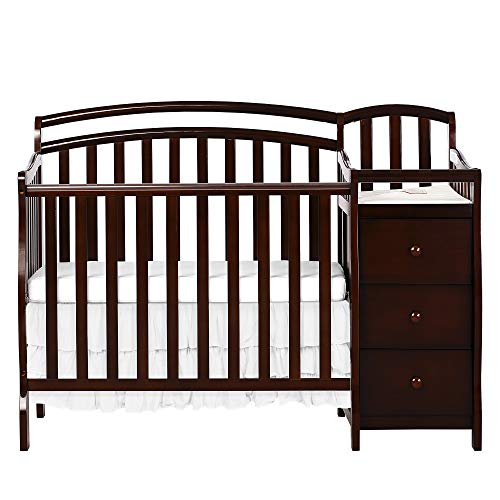 The Dream On Me Casco is a beautiful 4-in-1 mini crib with an attached changing table. This crib combo is great for smaller spaces. The crib features a three level mattress support and beautiful non-toxic finish. The changing table offers 3 roomy drawers for all your changing needs and 1” changing pad with security...