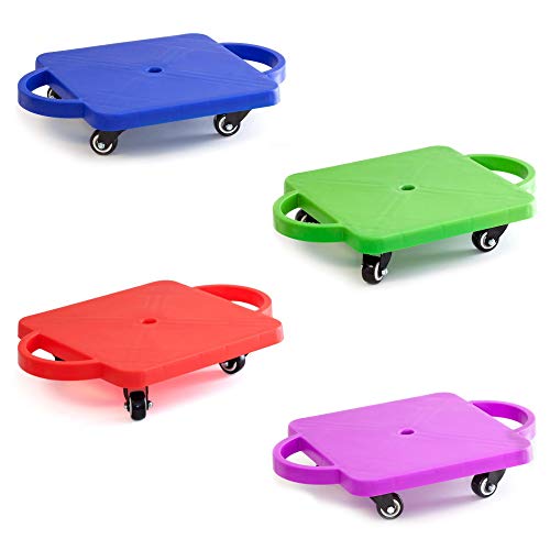 Our scooter board made from resist transformation, abrasion and strikes plastic material. The scooter board both sides has safety handles, keep fingers away from the rolling wheels while children play. Swivel casters with double bearing for better rolling, and the PU plastic wheels won’t damage floors and noise reduction The dimensions are 16.75″ L(Including...