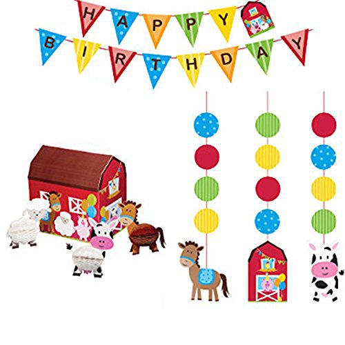 Farm animal, or party animal? Inspire a party animal stampede with our Farmhouse Fun party bundle! Featuring a colorful farm scene with all of your favorite barn animals, these decorations are perfect for celebrating a member of your herd. Farmhouse Fun Party Supplies Bundle includes hanging cutouts, ribbon banner, and centerpiece. Product Features Farmhouse...