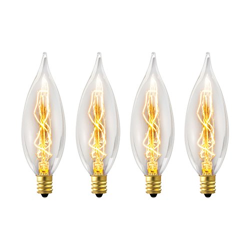 Globe Electric’s pack of four 25W Vintage Edison CA-type Flame Tip Incandescent Filament Light Bulb with E12 base is the perfect bulb to add an old-world feeling to your chandelier. In the early days of electrical lighting, inventors such as Thomas Edison tested and retested as they searched for long-burning filaments. In 1890, the...