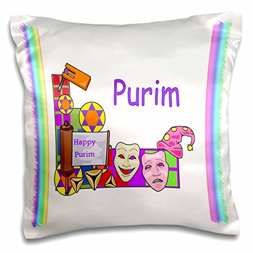 Image of Purim Cartoon With Grogger Masks And Magen David Pillow Case is a great way to add a splash of style to any room. The unique design of this 16″ x 16″ throw pillow case is sure to turn heads. Made of a durable satin material with a rear fold over closure. Image...