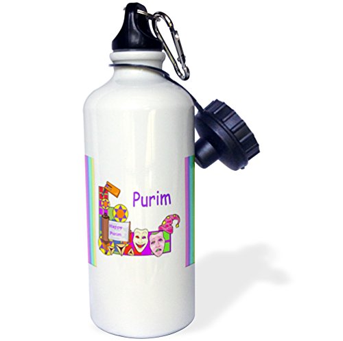 Image of Purim Cartoon With Grogger Masks And Magen David Water Bottle is an eco-friendly way to carry your favorite drink to school, work or anywhere you go. This 21oz stainless steel water bottle features a flip up spout with removable straw. High gloss image printed directly to white glossy exterior surface. Image on...