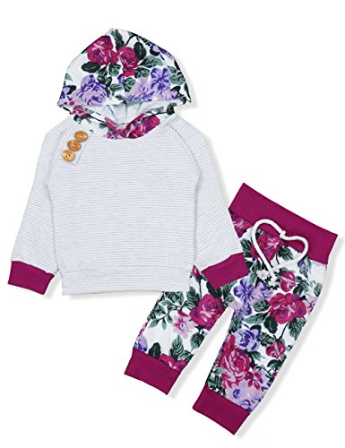 Please refer to the size chart when you purchased: Age————-Top Length———–Chest———Pants Length 0-6 Months—–12.60″/32cm——–18.90″/48cm——–15.35″/39cm 6-12 Months—–13.39″/34cm——–19.69″/50cm——–16.54″/42cm 12-18 Months—-14.17″/36cm——–20.47″/52cm——–17.72″/45cm 18-24 Months—14.96″/38cm——–21.26″/54cm——–18.90″/48cm Product Features High Quality Materials, very good Elasticity and Breathable Floral pattern Headbands will makes your baby girls more lovely Cute and Comfortable, playwear / homewear for your little one Elastic waistband pants, so...