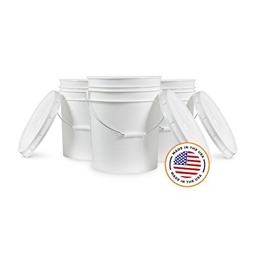 White, 5 gallon food grade buckets with lids. These storage pails are made with FDA approved plastic 90 mil thick, making them amazingly strong and solid. The all-metal handle has an attached plastic molded grip that protects hands from heavy loads. Lipped lids make stacking safe and easy. This is an excellent choice for...