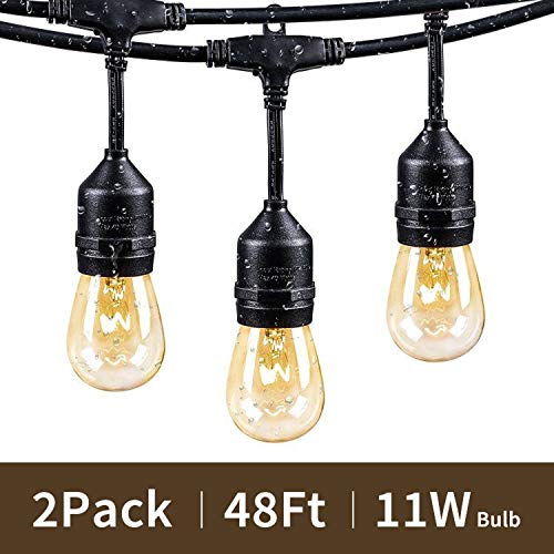 Outdoor String Lights 2 Pack 48Ft Edison Vintage Commercial Grade Lights with 15xE26 Base Sockets & S14 Bulbs, Weatherproof Connectable Strand for Porch Garden Deck Backyard Cafe Bar Wedding, Black Product Features PERECT DÉCOR LIGHTS FOR ANY OCCASION – These Outdoor String Lights will create a beautiful ambiance to Illuminate your patio, porch, garden,...
