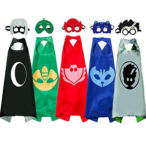 It’s Time To Be A Hero! Or choose Cartoon Hero Dress Up Kids Mask 5 sets for all characters Catboy Owlette and Gekko superhero costumes for kids. Great for birthday parties, playdates, pretend play and an easy Halloween costume Capes masks are made of double-sided satin. Much higher quality than some of the other...