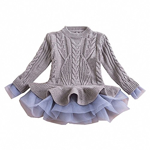 Please Measure Your Girls Size Cafefully Before Purchasing The Tutu Princess Clothing SIZE TABLE —SIZE———-LENGTH————BUST————SLEEVE——– 2T/3T(90)—-51cm/20.08inch—-27cm/10.63inch—-36cm/14.17inch—- 3T/4T(100)—-53cm/20.87inch—-28cm/11.02inch—-38cm/15.96inch—- 4T/5T(110)—-55cm/21.65inch—-29cm/11.42inch—-39cm/15.35inch—- 5T/6T(120)—-57cm/22.44inch—-30cm/11.81inch—-40cm/15.75inch—- 6T/7T(130-140)—-59cm/23.23inch—-31cm/12.20inch—-41cm/16.14inch—- Product Features MATERIAL: Cotton,Spandex,Veil, Woolen,Organza. The farbic is not thin and have long sleeve, suitable for spring autumn and winter PEOPLE: Sweater Tutu Dresses fit for 3-7 years Children girls STYLE: Woolen knitted dress...