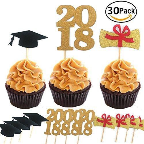 30pcs Graduate Cupcake Topper 2018 Graduation Party Supplies Product Features 3 types, 10 pieces for each The graduation cap cake toppers are perfect graduation party decorations and graduation cake decorations. And the funny graduation cap design will makes your party and event become more special. The cute graduation cake toppers are not only for...