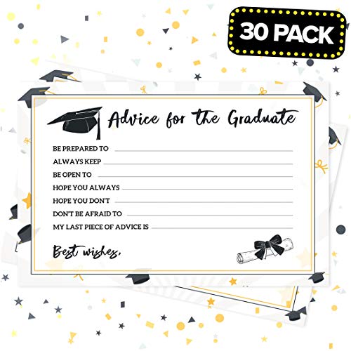 Graduation Party Supplies, Favors and Decorations for the 2019 Class Make Your Graduate Feel Special for Their Significant Achievement! Specially Commission Artist Rendered Designs & Decor 30 pack graduation advice cards. Party guests can write thoughtful advice to congrats the grad. Great for adult men, women, kids, boys & girls. Matte front, gloss back....