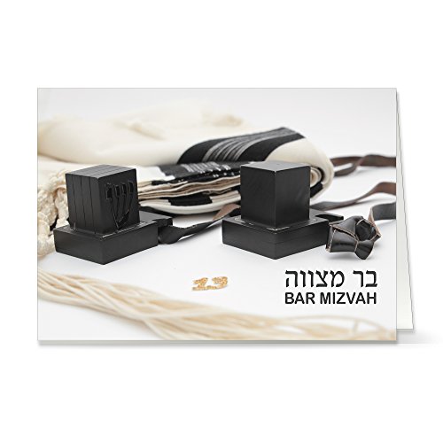 Bar Mitzvah Tefillin phylacteries and Tallit prayer shawl Congratulations Greeting Card