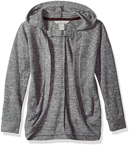 Long sleeve top in soft, space-dye hacci sweater knit for post-workout warmth. Product Features Hooded cardigan features open front Wrap cardigan features open front Hooded pullover top features crisscross front hem