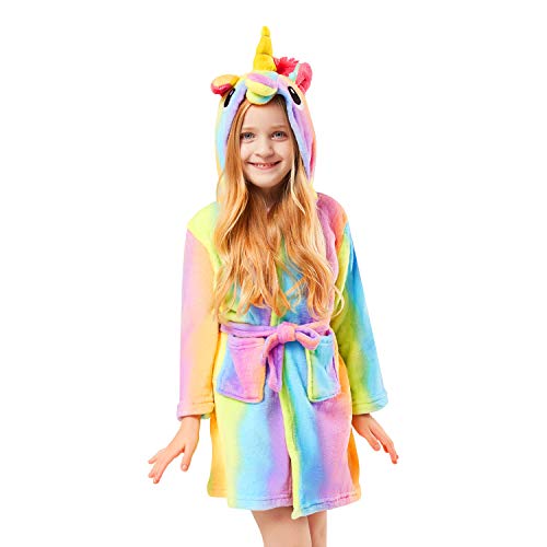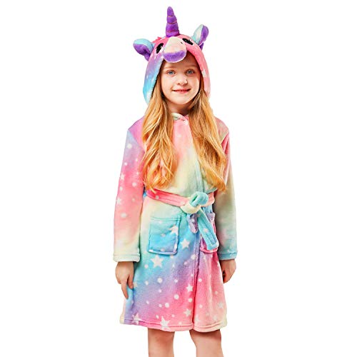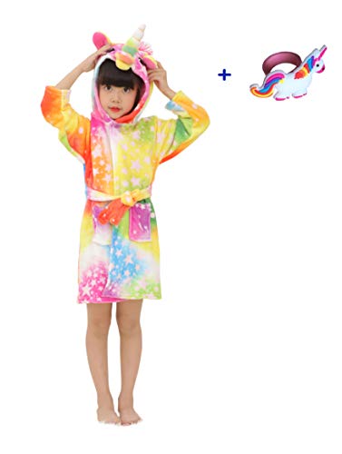 Product Features If you are not sure about the size, please order one size up. Made with premium polyester,superior soft, skin-friendly touch for children Unique & cute unicorn design, waist tie is sewn into the robe, your little kids won’t lose the robe belt Random unicorn ring gift come together with the bathrobe Cute...
