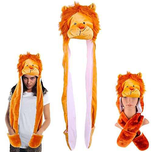 Lion Plush Hoodie Hat and Mittens, Cap and Long Paws What You will get: Plush lion hat with long paws as featured pictures.1 piece. Product Features DESIGN: Lion, furry headCOLOR: OrangeFABRIC: Plush furAGE RECOM: Fits most children & adults Ideal To Use For This hat and paw makes a fantastic animal costume for Halloween,...