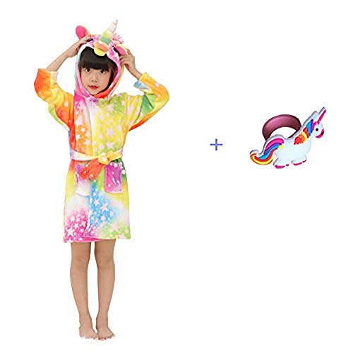 Product Features If you are not sure about the size, please order one size up. Made with premium polyester,superior soft, skin-friendly touch for children Unique & cute unicorn design, waist tie is sewn into the robe, your little kids won’t lose the robe belt Random unicorn ring gift come together with the bathrobe. Cute...